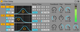 Beat Repeatには、デバイスの通過周波数幅を決定するローパスとハイパスを組み合わせたフィルターが組み込まれています。 フィルターは、オンとオフに切り換えることが可能で、各コントロールを使って中央周波数と通過周波数帯域幅を設定することができます。