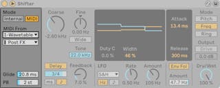 LiveのVocoderは、モジュレーターとして使用するオーディオ素材を含むトラックにインサートします。 インサートすると、[Carrier]セレクターでキャリア信号に対するオプションを選択できるようになります。