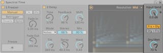 グローバルの[Dry/Wet]コントロールでは、エフェクトのかかっていない(ドライな)信号とエフェクトのかかっている(ウェットな)信号のバランスを調整します。 Spectral Timeをリターントラックで使用している場合は100%に設定します。