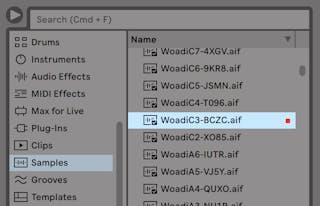 When a sample is dragged in from Live’s built-in browser, Live automatically creates a clip to play that sample. Prior to dragging in a sample, one can audition or preview it directly in the browser; the switch in the browser with the headphone icon activates previewing.