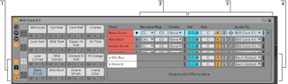 - In addition to the standard selectors found on all Racks, Drum Racks have four additional controls in the view column. From top to bottom, these are toggles for the Input/Output, Send, and Return sections, and the Auto Select button.
