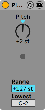 Pitch is a transposition tool that changes incoming note pitch by +/- 128 semitones.