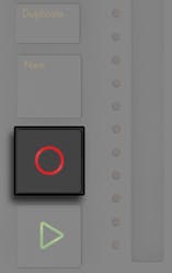 Record — Press the Record button to begin recording. Pressing Record again will stop recording but will continue playing back the clip. Pressing Record a third time will enable overdub mode, allowing you to record into the clip while it plays back.
