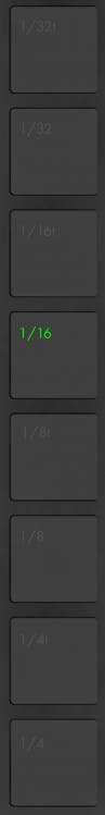 - Light Red — the right two columns of pads will turn red if triplets are selected as the step size. In this case, these pads are not active; only the first six pads in each row of steps can be used.